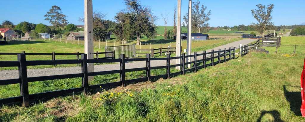Tranqueras de Pino impregnadas con carbolineo u otro preservante para maderas. Garantizando la durabilidad de estas a la interperie, al sol y la lluvia.