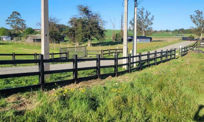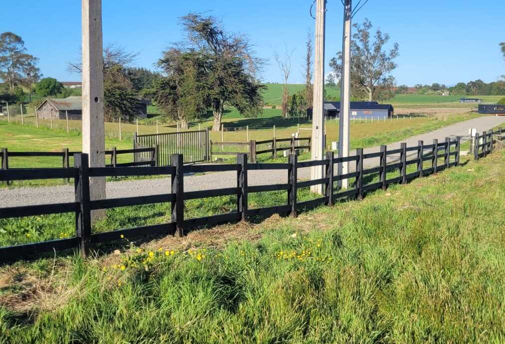Tranqueras de Pino impregnadas con carbolineo u otro preservante para maderas. Garantizando la durabilidad de estas a la interperie, al sol y la lluvia.